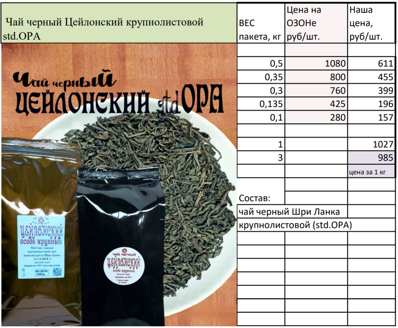 Черный чай Цейлон (Шри-ланка) std.OpA