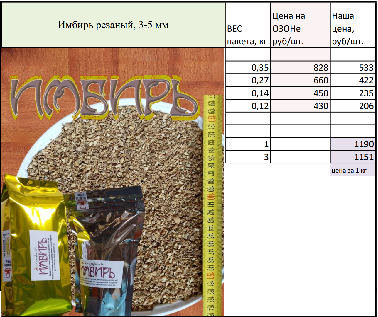 имбирь резанный (фракция 3-5 мм)