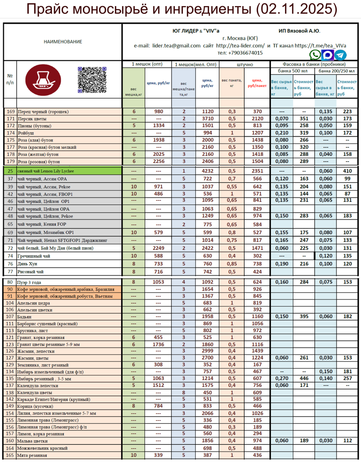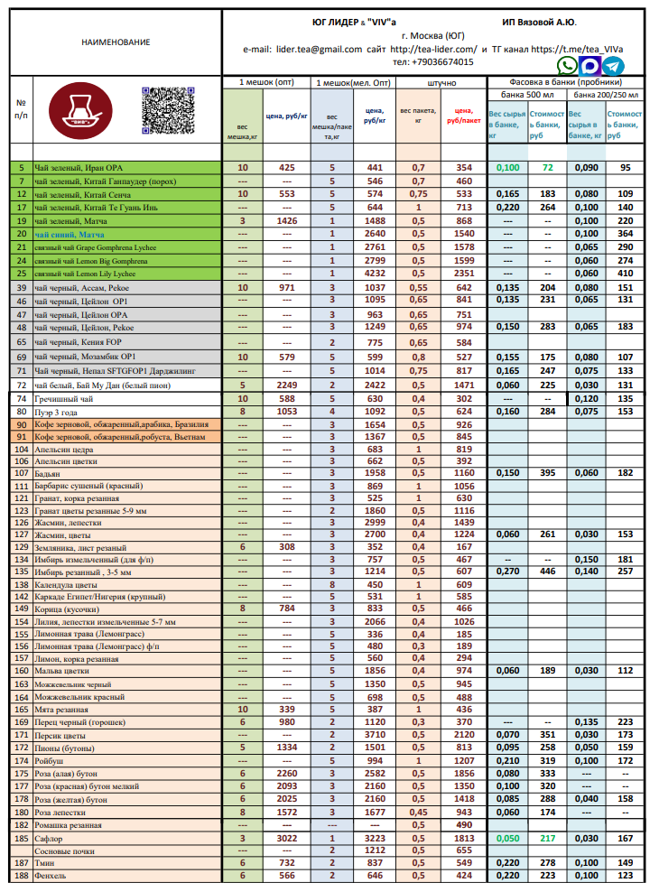 Чайное сырье и ингредиенты. Для просмотра прайса нажмите ПЕРЕЙТИ/СКАЧАТЬ.