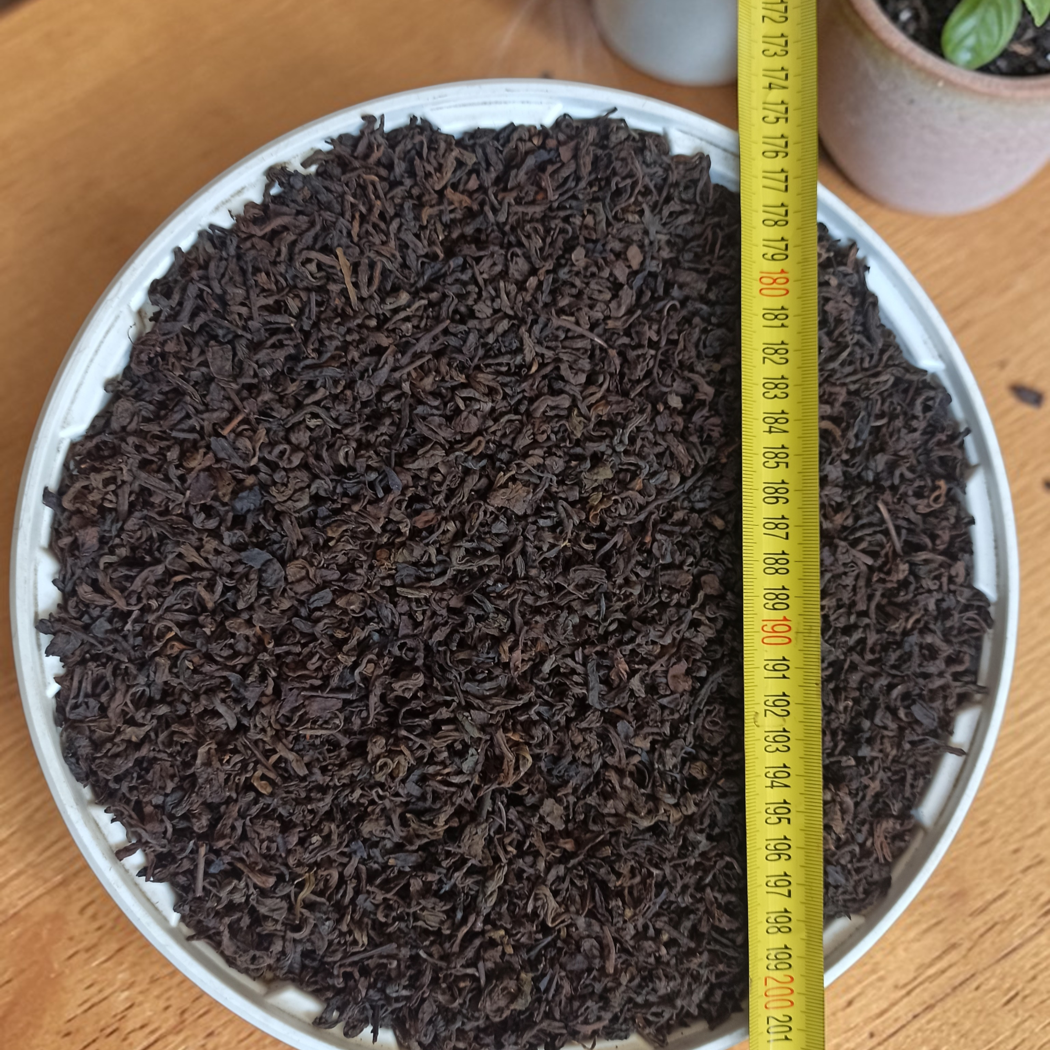 Представляемый чай Пуэр – является Постферментированным чаем трёх летней выдержки из сырья с крупнолистового юньнаньского чайного дерева. Сырьё от Китайской чайной компании Hunan tea group company limited. Чай крупнолистовой.